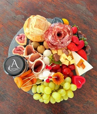 Nossas Grazing Tables são montadas com uma seleção premium de produtos. Incluímos uma variedade de queijos nacionais e importados , charcutarias finas (como presunto cru, salames, copa), frutas da estação, frutas secas, nuts, pães artesanais, torradas, geleias especiais, patês, azeitonas marinadas, e toques de decoração comestíveis. Podemos adaptar os itens de acordo com a sua preferência e a sazonalidade dos produtos, garantindo sempre a mais alta qualidade e frescor.